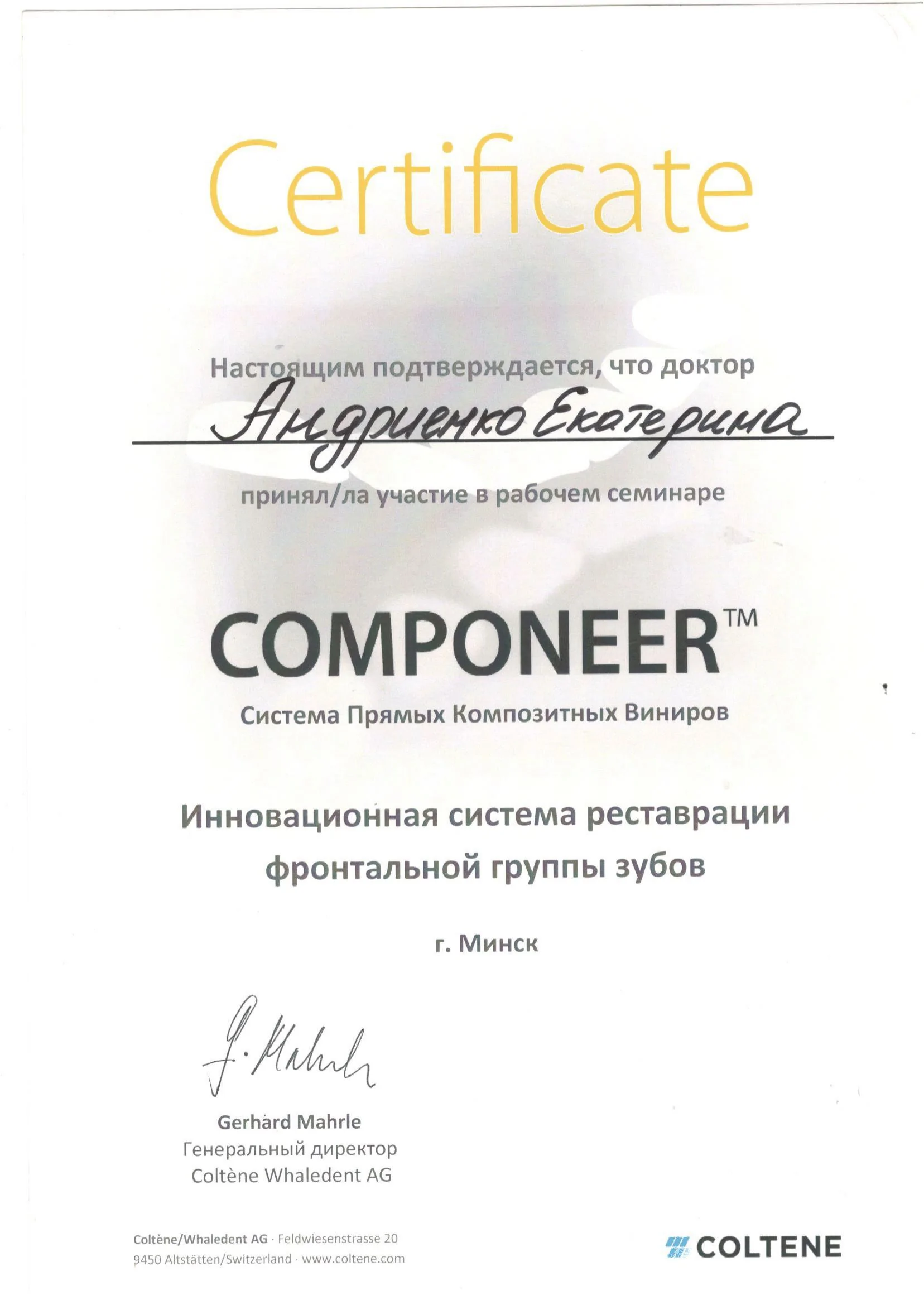 Каждый сертификат доказывает, что мы серьезно относимся к своей работе и намерены достигнуть цели – сохранить ваши зубы надолго и поддерживать здоровье полости рта.