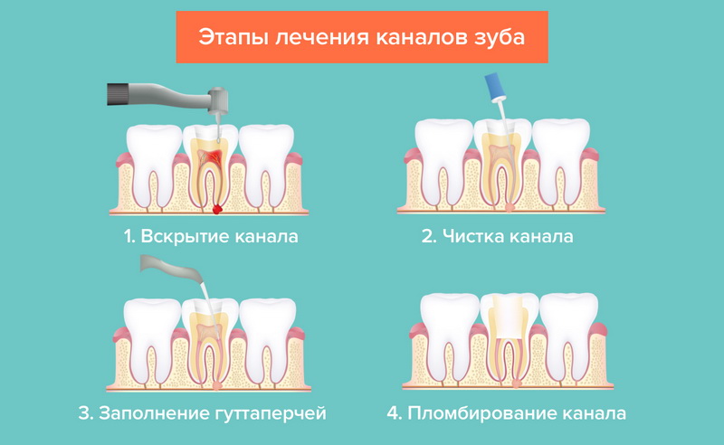 Лечение корневых каналов зуба (эндодонтическое лечение) включает несколько этапов. В общем, процесс выглядит следующим образом:
