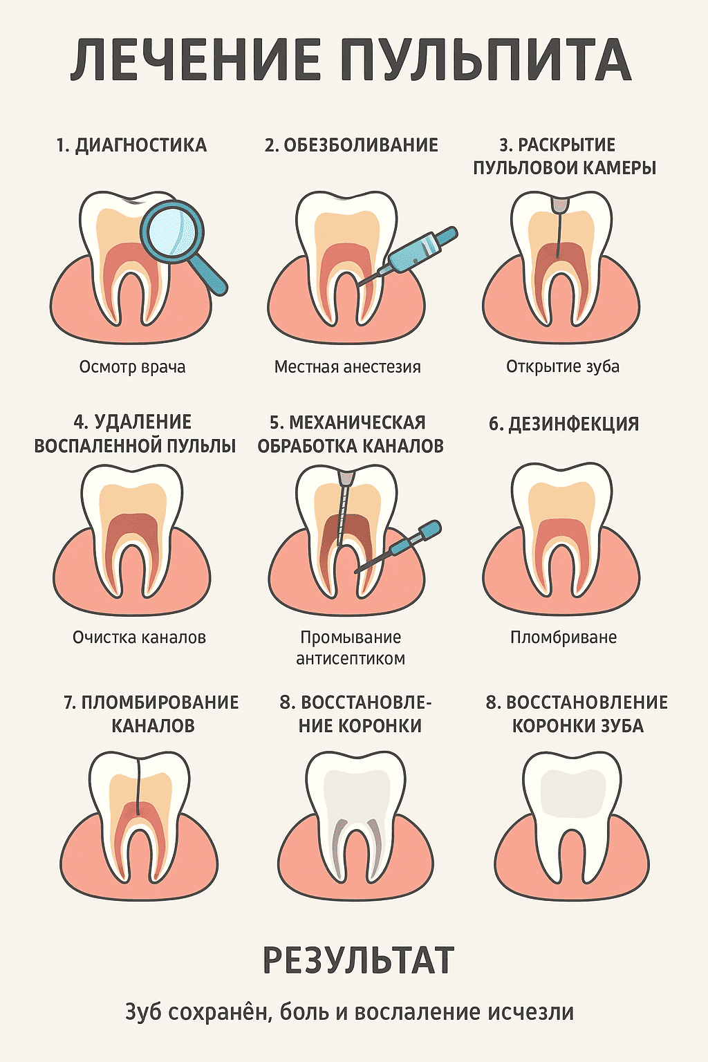 Результат – стоматолог вылечит пульпит, чтобы вы могли жевать без боли.